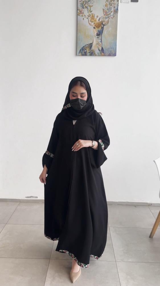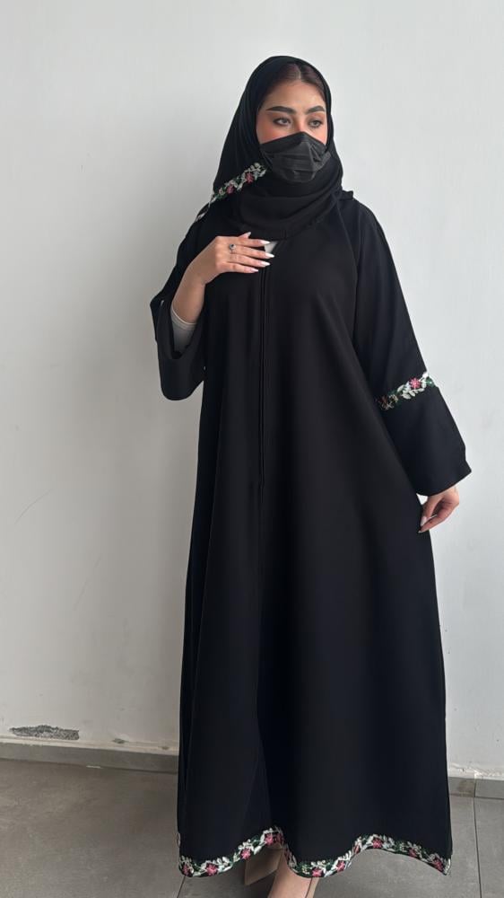 عباية فاخرة مستوحاة من الجمال الجنوبي، تتميز بتطريز أنيق وطرحة مطرزة تنسجم مع التفاصيل، مصنوعة من قماش كريب ملكي فاخر بلون أسود فاحم، بقصة بسيطة وواسعة تمنحك الراحة والأناقة في آنٍ واحد.